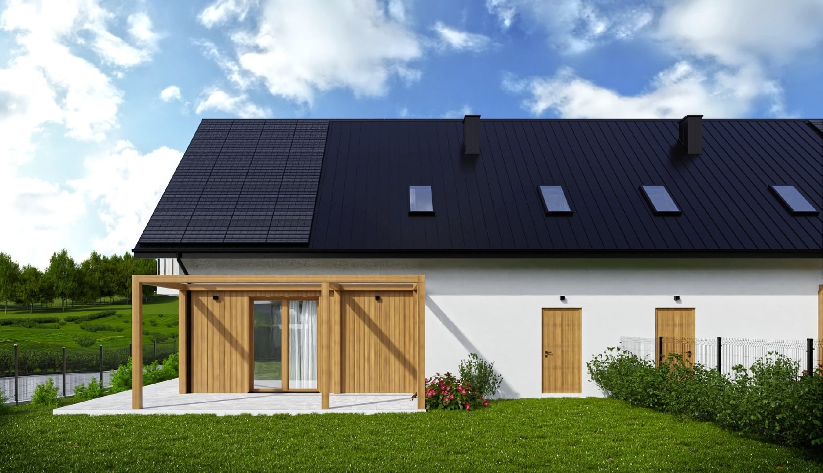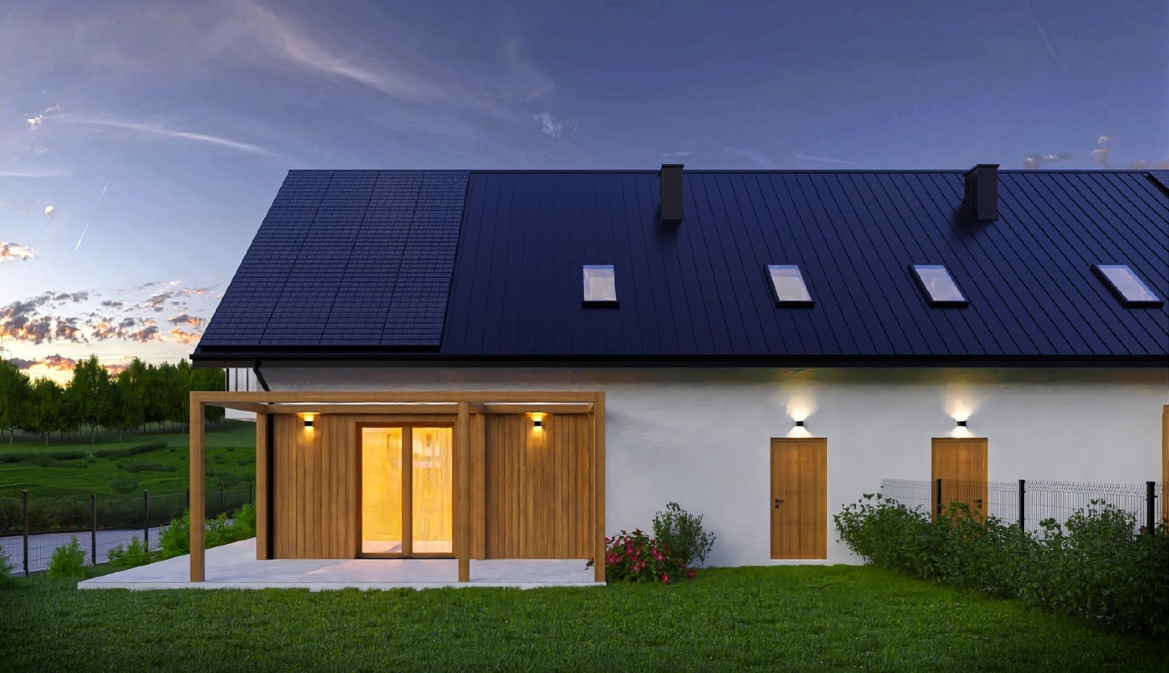 Ponadto proponujemy szereg dodatkowy rozwiązań, w tym m.in.: montaż instalacji fotowoltaicznej z magazynem energii, rekuperacji czy też rolety zewnętrzne w oknach Zwiń ∧